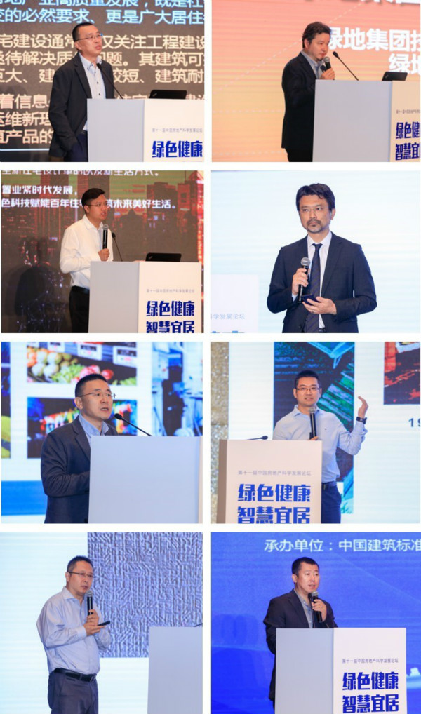 標(biāo)準(zhǔn)院總建筑師劉東衛(wèi)以《智慧住宅與綠色可持續(xù)建設(shè)的房地產(chǎn)業(yè)高質(zhì)量發(fā)展》為主題首先進行了分享。在綠色地產(chǎn)領(lǐng)域居領(lǐng)先地位的房地產(chǎn)企業(yè)也深入地介紹了各自企業(yè)的綠色技術(shù)。綠地控股集團總建筑師、綠地控股集團技術(shù)管理產(chǎn)品研發(fā)部總經(jīng)理戎武杰,以《高質(zhì)量發(fā)展,可持續(xù)引領(lǐng)-綠地集團“綠健百科”體系》介紹了綠地在綠色建筑領(lǐng)域的技術(shù)實現(xiàn)與體系建造。當(dāng)代置業(yè)(中國)有限公司總裁助理、北京區(qū)域公司總經(jīng)理孫帆,介紹了當(dāng)代集團新一代住宅產(chǎn)品研發(fā)——當(dāng)代上品灣MOMΛ項目的技術(shù)體系與實現(xiàn)效能。上海朗綠建筑科技股份有限公司總裁陳棟梁則介紹了綠色智慧與健康生活——朗綠綠色人居產(chǎn)品解決方案。全方位的介紹、新技術(shù)的引用,以及積極的效果引發(fā)聽眾廣泛關(guān)注。松下電氣機器(北京)有限公司副總經(jīng)理黃忠明也從建筑配套產(chǎn)品的角度,以松下產(chǎn)品為例介紹了國際上智慧社區(qū)的發(fā)展。