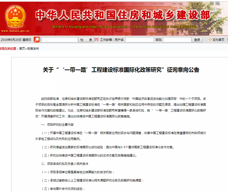 近日,標(biāo)準(zhǔn)院成功中標(biāo)中國經(jīng)濟(jì)改革促進(jìn)與能力加強(qiáng)項目(TCC6)子項目“‘一帶一路’工程建設(shè)標(biāo)準(zhǔn)國際化政策研究”。該項目是經(jīng)財政部批準(zhǔn)的世界銀行貸款項目,也是住房和城鄉(xiāng)建設(shè)部標(biāo)準(zhǔn)定額司第一次公開向全社會征詢意向的標(biāo)準(zhǔn)國際化招標(biāo)項目。該項目的目標(biāo)是全面調(diào)研分析中國工程建設(shè)標(biāo)準(zhǔn)在“一帶一路”相關(guān)國家和地區(qū)應(yīng)用中存在的問題及原因,提出加強(qiáng)工程建設(shè)標(biāo)準(zhǔn)國際合作方案和政策建議。就“一帶一路”工程建設(shè)標(biāo)準(zhǔn)國際化政策研究開展調(diào)查研究工作,提出加快推進(jìn)中國工程建設(shè)標(biāo)準(zhǔn)國際化政策措施。