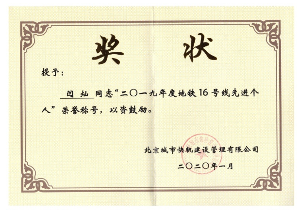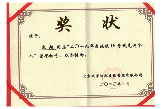 2019年度地下二院也涌現(xiàn)一批甘于奉獻(xiàn)、成績突出的優(yōu)秀員工,他們在各自的崗位上兢兢業(yè)業(yè),不畏艱辛,努力將本職工作做到極致,得到了建設(shè)單位的高度肯定,并授予先進(jìn)個人榮譽(yù)稱號。
