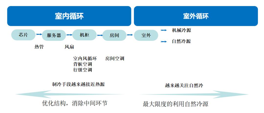 在制冷發(fā)展方面,也在不斷的優(yōu)化結(jié)構(gòu),消除中間環(huán)節(jié),最大限度的利用自然冷源??紤]到能源的綜合利用,數(shù)據(jù)中心全年散熱,需要制冷,廢熱也可用于辦公區(qū)的供暖。