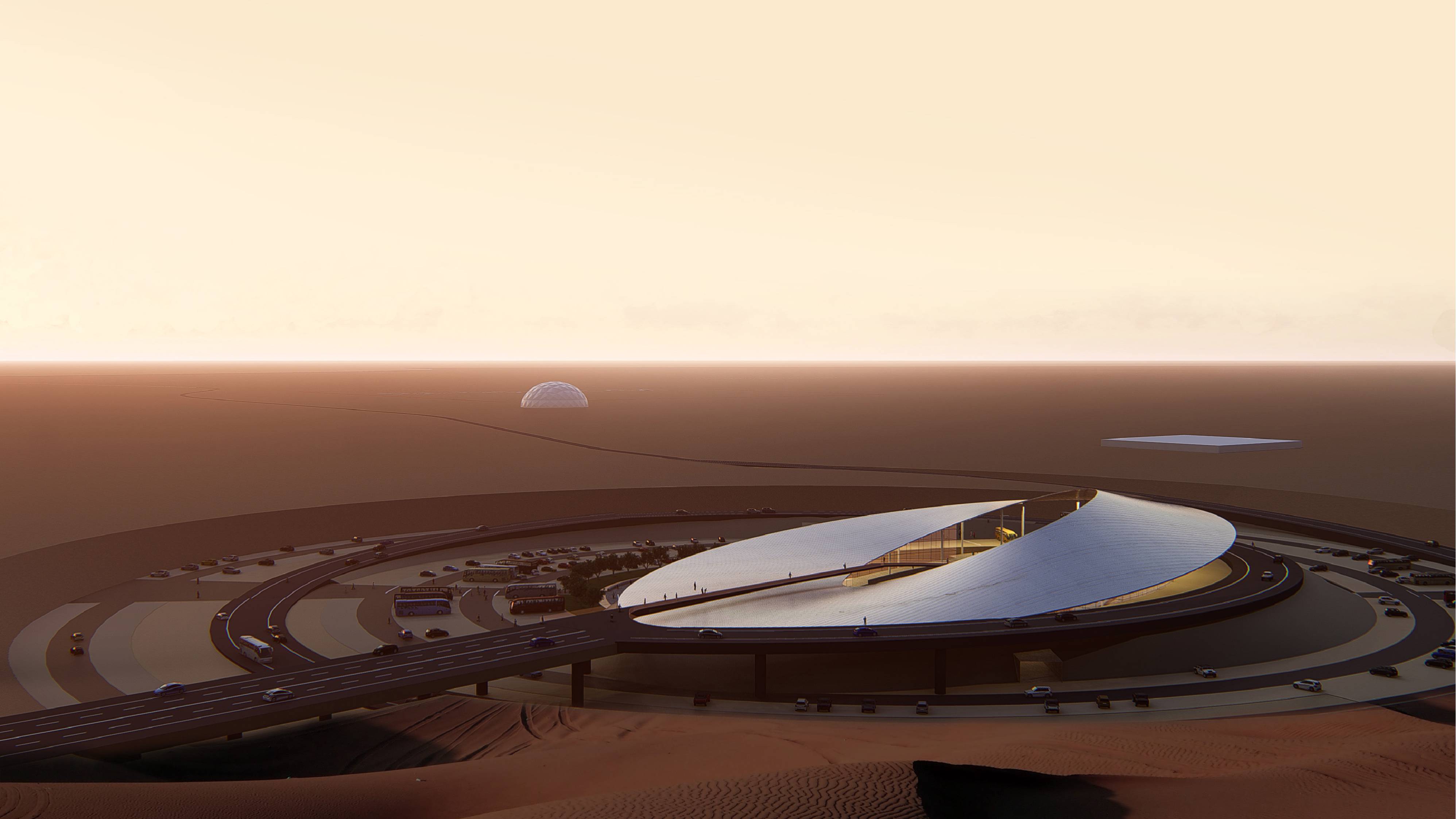 項(xiàng)目建成后,將集成游客接待,旅游信息咨詢以及公交系統(tǒng)換乘等基本功能,滿足往來游客旅游集散需求,是進(jìn)入沙坡頭5A級(jí)景區(qū)的第一站。其形態(tài)宛如墜落于沙丘間的外星來客,為游人創(chuàng)造了穿越“蟲洞”般的獨(dú)特體驗(yàn),與塞外茫茫大漠形成鮮明對(duì)比,提升了中國(guó)沙漠旅游之門的整體形象。未來,必將成為國(guó)內(nèi)西部地區(qū)知名旅游景點(diǎn)的網(wǎng)紅打卡圣地。