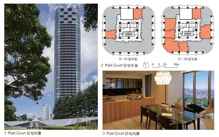 例如,日本三井不動產(chǎn)的東京超高層裝配式混凝土住宅Park Court(圖1~3)即為代表性的項目之一。該住宅于2018 年竣工,地上44 層。項目采用大空間框架結構的SI住宅體系,主要建筑系統(tǒng)集成技術包括預制高強鋼混凝土框架結構技術、可使用100 年之久的建筑結構體技術、減隔震技術、幕墻外圍護結構與內外保溫系統(tǒng)等。項目采用部品化集成裝修,現(xiàn)場施工簡便、效率和質量極高,整體衛(wèi)浴部品均為工廠生產(chǎn)的批量化產(chǎn)品。在該項目中,隔墻系統(tǒng)形成了靈活可變的空間,管線分離技術方便檢修維護。此外,SI 體系提供的多樣化的平面也滿足了不同住戶對功能空間改變的需求。