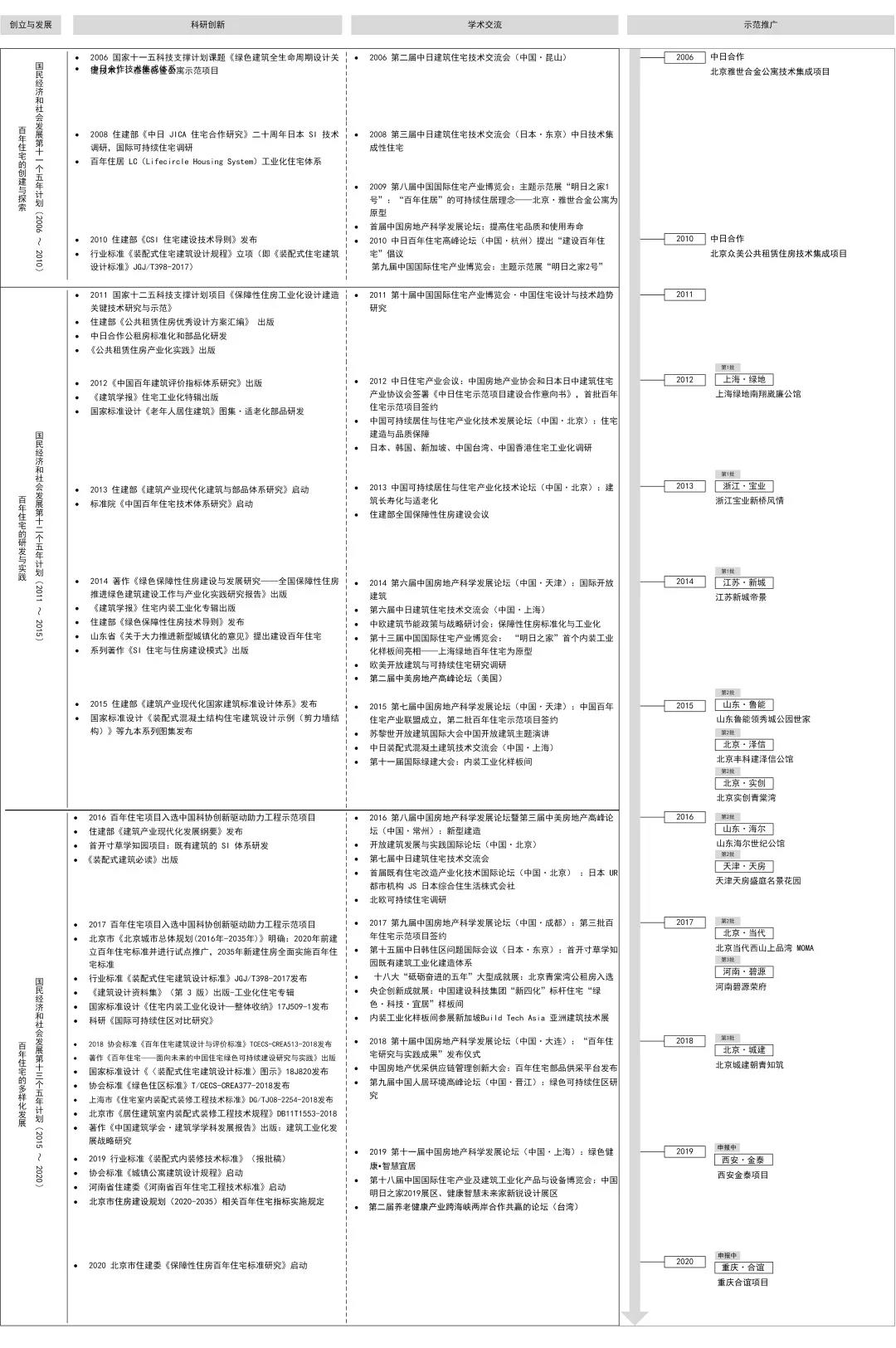 2010 年,在中日百年住宅國際高峰論壇上,中國房地產(chǎn)業(yè)協(xié)會向全社會、全行業(yè)發(fā)起了《建設(shè)百年住宅的倡議》。2012 年5月18 日,中國房地產(chǎn)業(yè)協(xié)會和日本日中建筑住宅產(chǎn)業(yè)協(xié)議會共同簽署了《中日住宅示范項目建設(shè)合作意向書》,就促進(jìn)中日兩國在住宅建設(shè)領(lǐng)域進(jìn)一步深化交流、合作開發(fā)示范項目等達(dá)成一致意見,提出建設(shè)以建筑產(chǎn)業(yè)化生產(chǎn)方式建設(shè)的長壽化、高品質(zhì)、低能耗的中國百年住宅Long-Life Sustainable Housing 新型產(chǎn)品。項目實施委托中國建設(shè)科技集團股份有限公司(集團)的中國建筑標(biāo)準(zhǔn)設(shè)計研究院有限公司負(fù)責(zé)示范項目的組織管理、技術(shù)研發(fā)和設(shè)計實施工作,并簽約開展了第一批示范項目。2014年第一個百年住宅示范項目上海綠地南翔崴廉公館竣工,引起了全行業(yè)和社會的廣泛好評。2015年第二批、2017年第三批示范項目陸續(xù)簽約或建成;截至2019 年底,全國示范項目總建筑面積已達(dá)百余萬平方米。