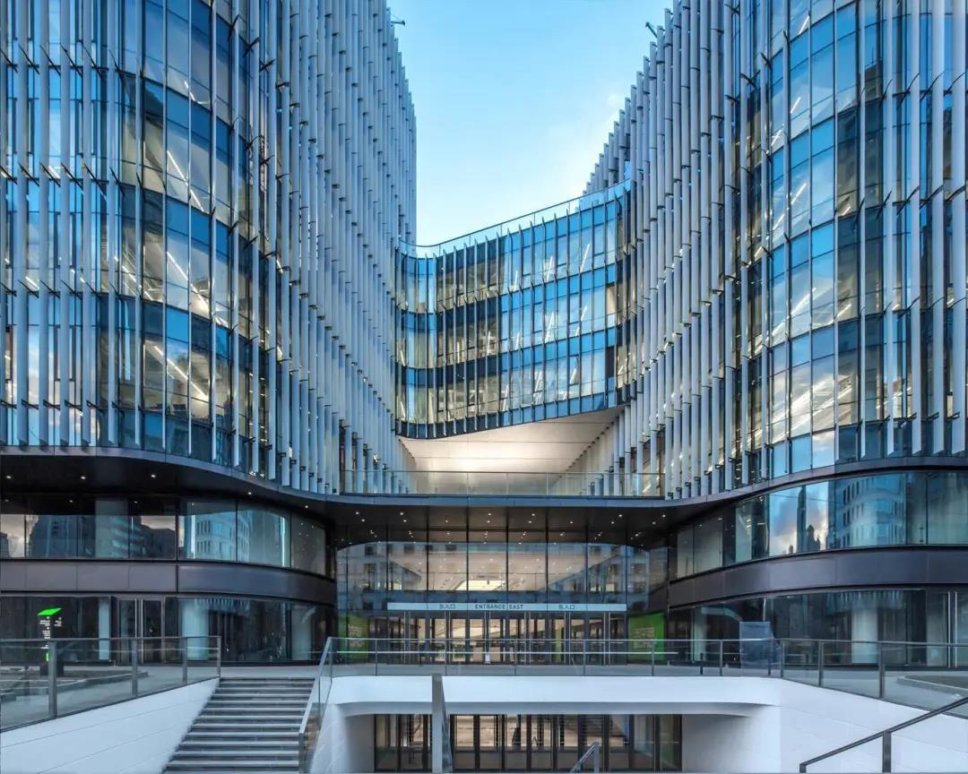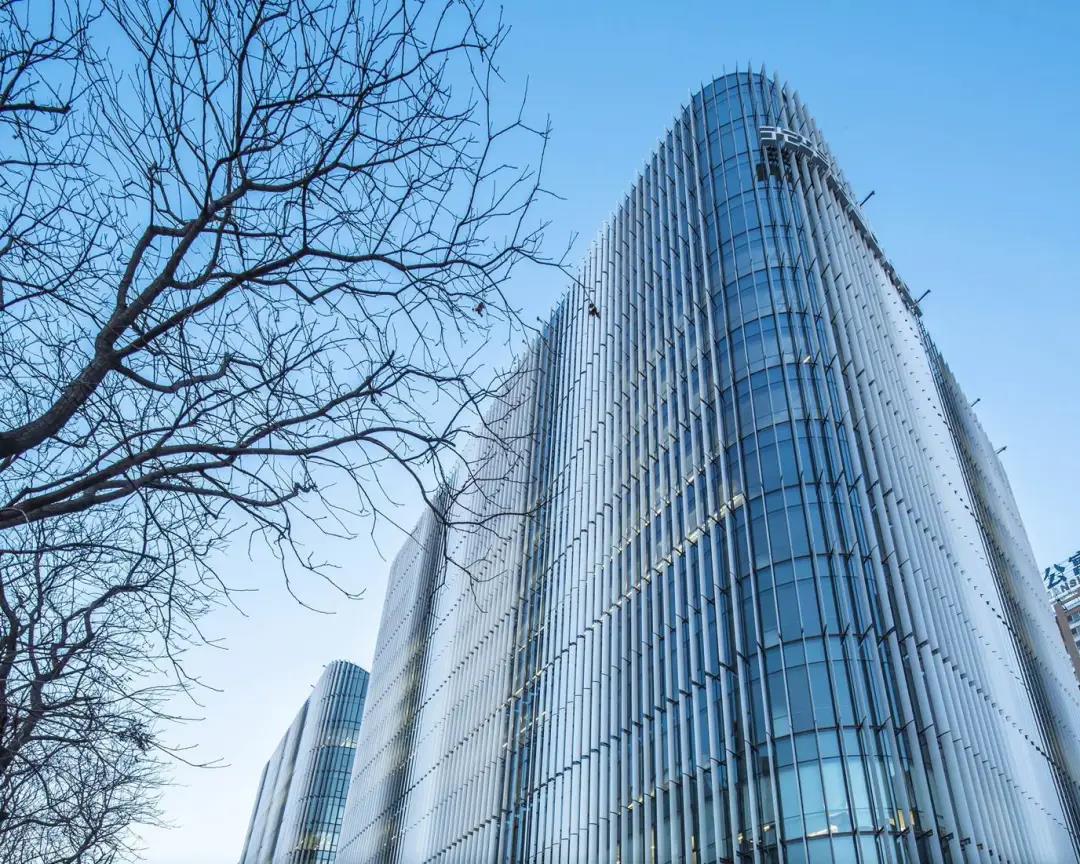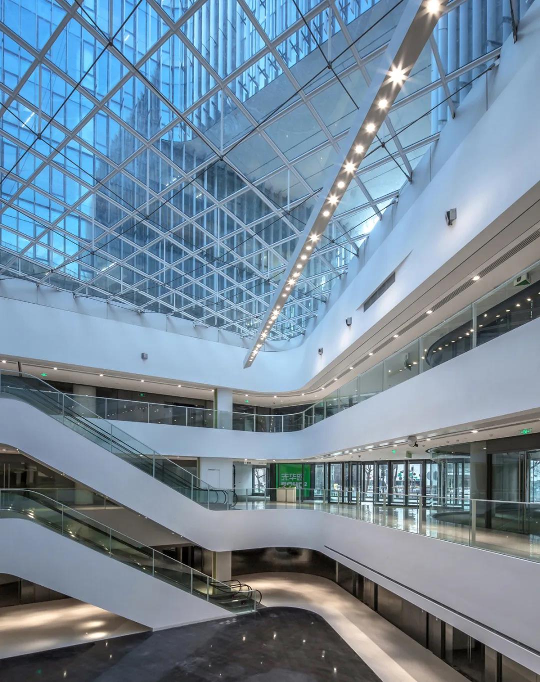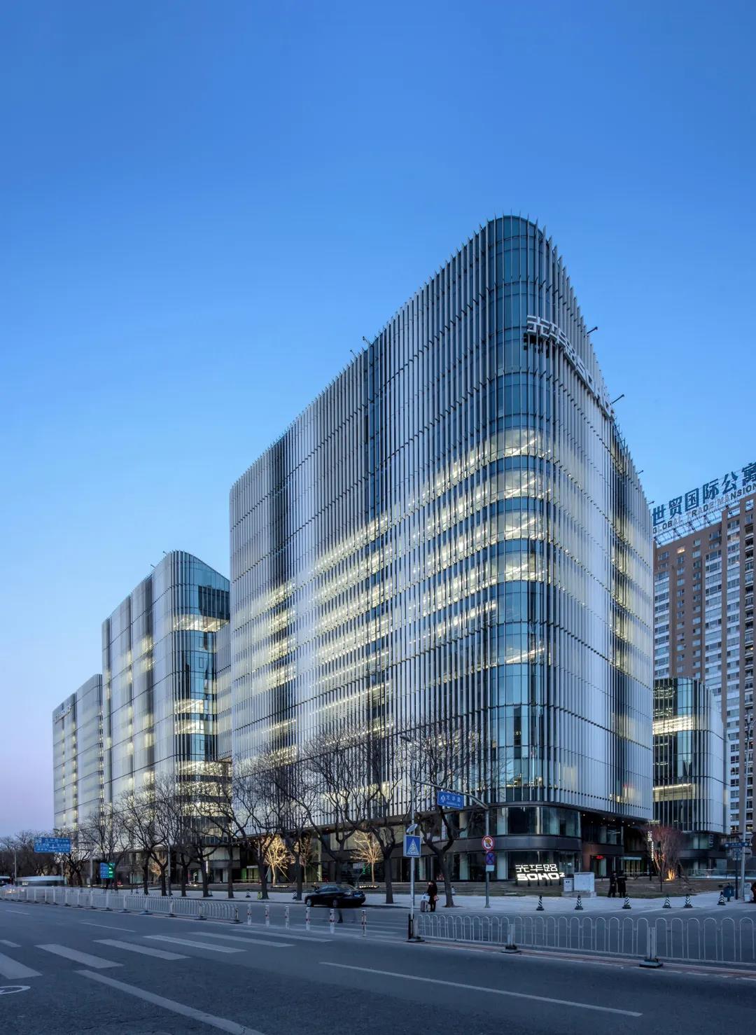 項目位于玻璃幕墻之間的垂直百葉可對采光進行調(diào)節(jié),同時也給建筑的立面帶來柔和清透如波浪般的光澤,如同一層浮動于建筑表面的垂簾,彰顯建筑整體的輕靈優(yōu)雅。