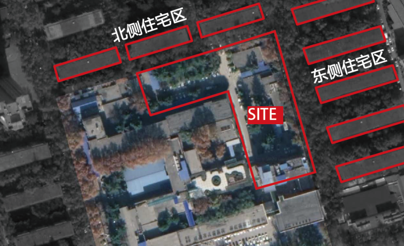 業(yè)主要求新建建筑建造期間,老院區(qū)仍需正常運(yùn)行,用地僅北側(cè)綠地和東側(cè)單層建筑范圍內(nèi),可作為新建大樓的建設(shè)用地。