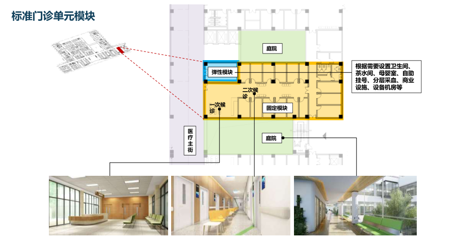 ▲標(biāo)準(zhǔn)門診單元采用固定模塊+彈性模塊組合方式