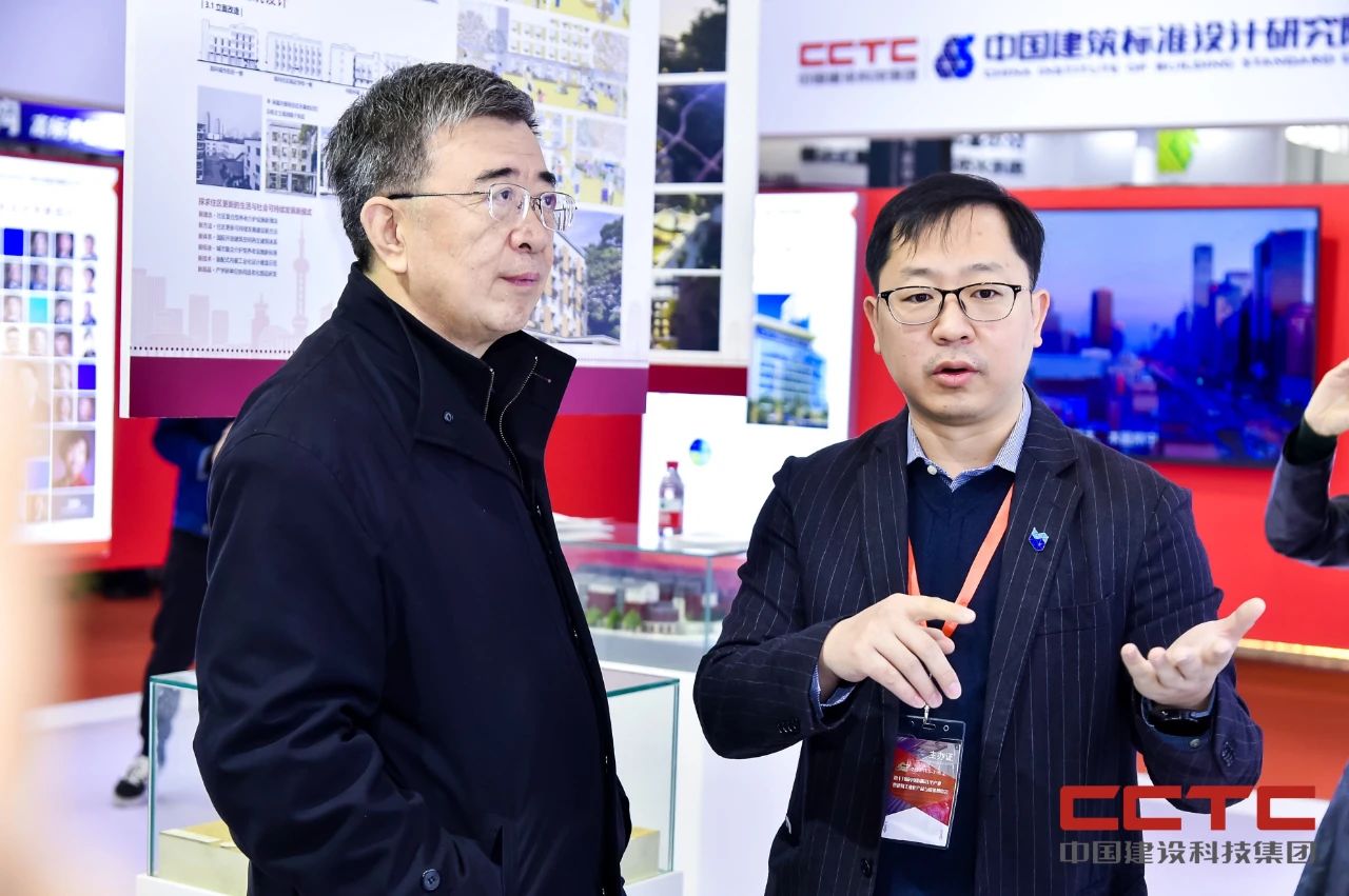 ▲住房和城鄉(xiāng)建設(shè)部標(biāo)準(zhǔn)定額司副司長郭理橋(左)到訪展臺