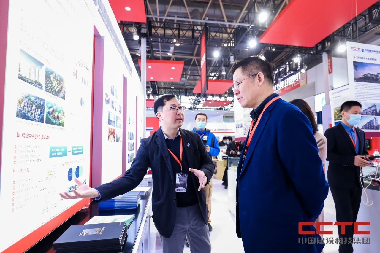 ▲住建部住宅產(chǎn)業(yè)化中心副主任梁俊強(qiáng)(左)到訪集團(tuán)展臺