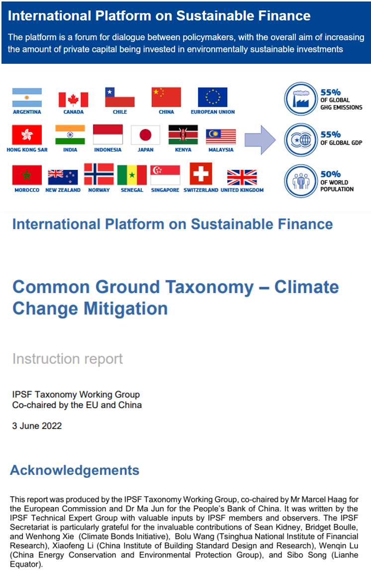 標(biāo)準(zhǔn)院參與完成的可持續(xù)金融國際平臺(IPSF)《可持續(xù)金融共同分類目錄》由